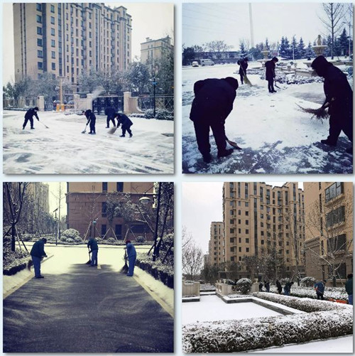 當您吃過早餐暖暖出門的時候,當您欣賞朋友圈里美麗雪景的時候,有一群人已經默默來到了工作崗位上,他們在漫天飛雪中忙碌,只為讓業主在雪天安全出行,防止因大雪路滑帶來的各種安全隱患。