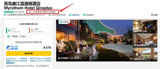 青島鑫江溫德姆酒店能夠從眾多競(jìng)爭(zhēng)者中脫穎而出,不僅僅是酒店自身過(guò)硬設(shè)施設(shè)備,更加是員工們精誠(chéng)合作用心服務(wù)和真誠(chéng)待客的結(jié)果,并有賴(lài)于賓客的信任和肯定,使得青島鑫江溫德姆酒店在貓途鷹網(wǎng)站1763家青島酒店中排名第4!