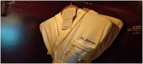 接待前,酒店提前獲取到了總統(tǒng)先生身材的信息,為總統(tǒng)閣下定做了一套浴袍,一套睡衣,并在上面繡上了馬姆努恩.侯賽因總統(tǒng)閣下的名字,總統(tǒng)閣下入住后非常驚喜。