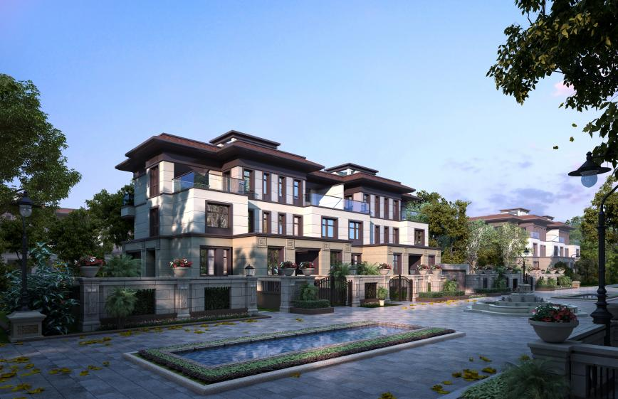 新中式風格的建筑,依不同地勢、落差和自然景觀,浸透出藝術與自然的兼容之美。在建筑排布上,鑫江·瑞府整體容積率約1.2,涵蓋了聯排別墅、疊拼別墅、林溪洋房這樣的稀缺低密產品。