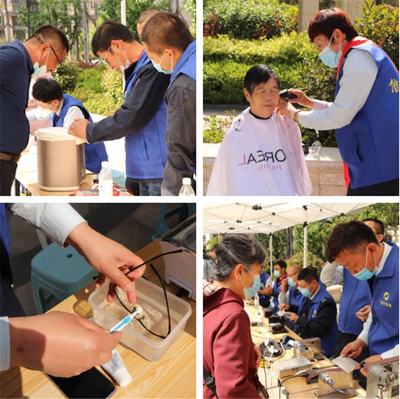 本次公益服務范圍涉及了理發、小家電維修、穿馬扎、磨剪刀、磨菜刀、眼鏡清洗、首飾清洗等服務項目,看著它們煥然一新的樣子,業主們心里的石頭也終于落地了。