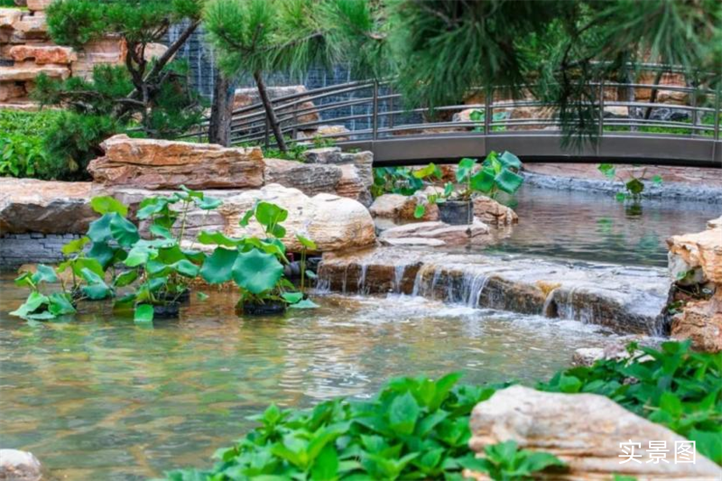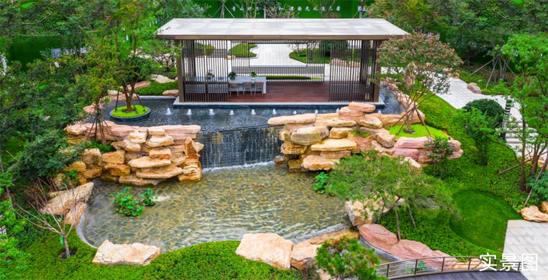 在《千里江山圖》中,蒼松掩映的疊瀑,在值此青綠間,尤為賞心悅目。而在鑫江·瑞府,也有這樣的疊瀑,自攬勝軒流下匯入歆湖,大氣而靈動(dòng)。
