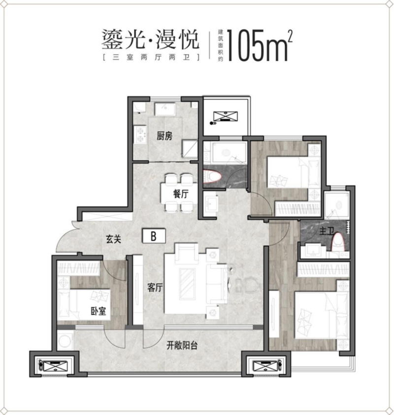戶型升級:匠造零浪費、零過道、零死角的極致戶型美學,呈現建面約95-140㎡的寬域空間,全系標配寬廳,主臥套房設計,雙陽臺布局,兼具了卓越的功能性與非凡的品質感。