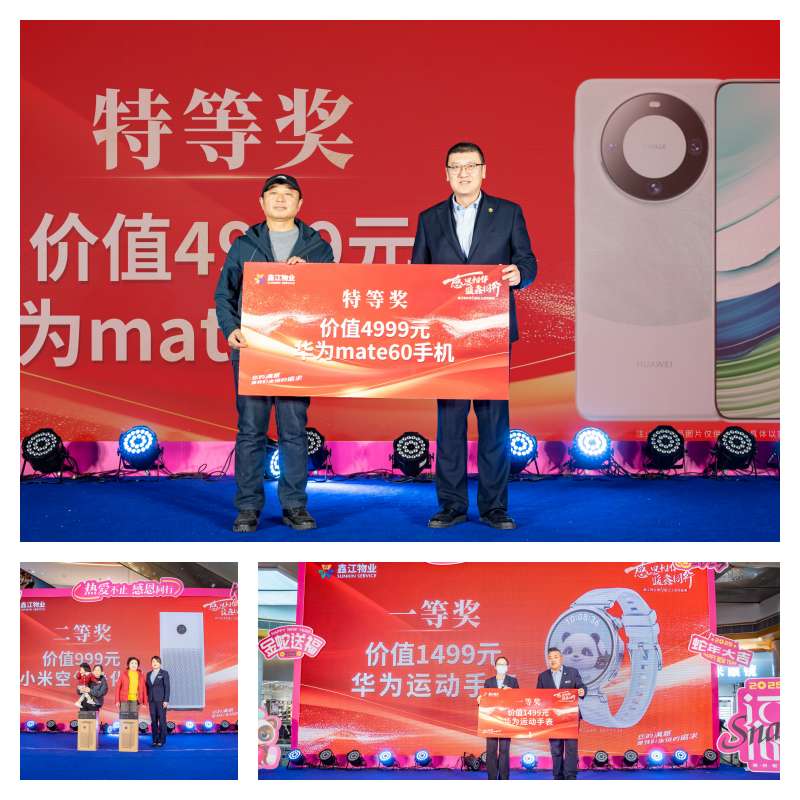 活動最受矚目的當屬幸運大抽獎環節!一輪輪的抽獎,將現場氣氛一次次推向高潮!華為手機、運動手表、小米空氣凈化器等硬核大獎陸續揭曉,更引來現場陣陣歡呼。有羨慕、有祝福、有笑語,有掌聲,這友善的氛圍成為鑫江業主們和諧鄰里的最好印證!